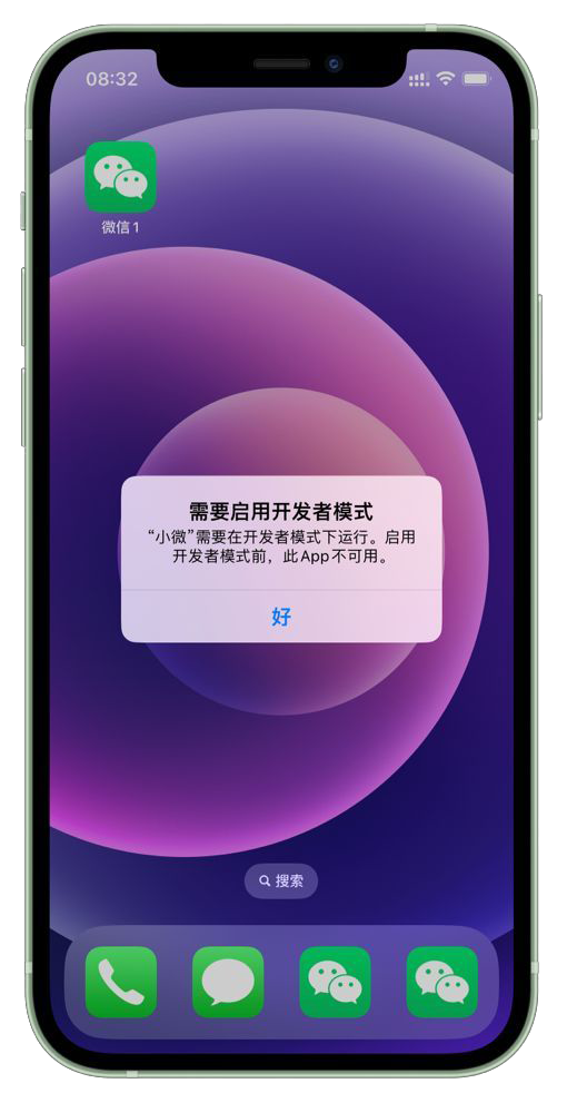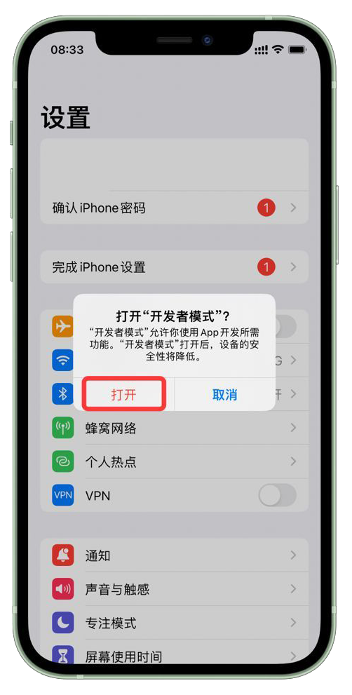 重新启动后,弹出【打开开发者模式】点击打开,然后就能正常打开APP了